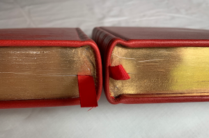 This cover is also red calfskin, but it is a step up in binding quality.